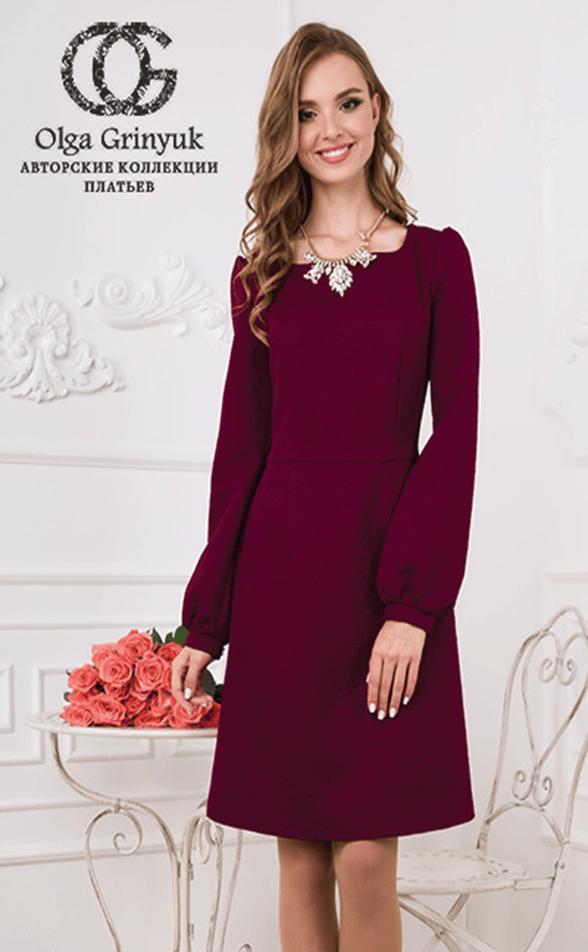 Фарея - однотонное жаккардовое платье с объемными рукавами на манжетах, фигурным вырезом и потайной молнией по спинке. Прекрасный вариант для выхода в свет.