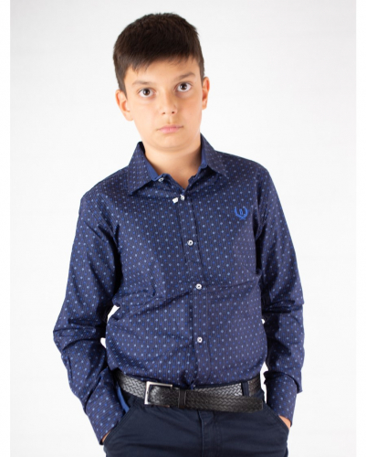 Приталенная рубашка. Длинну рукава можно регулировать. Спереди вышит фирменный логотип. Отличный вариант для школы. Немного маломерит.