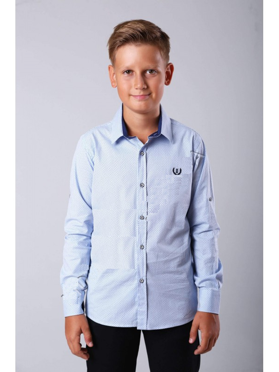 Приталенная рубашка. Спереди вышит фирменный логотип. Отличный вариант для школы.